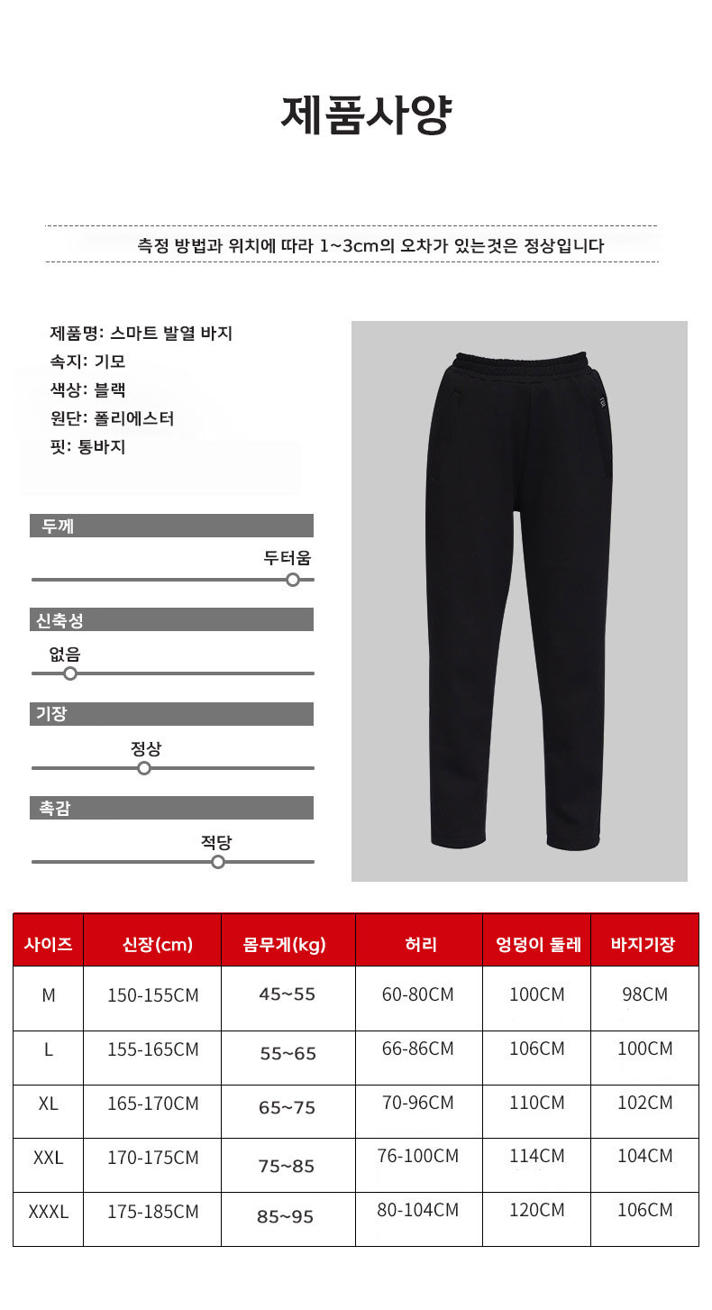 조작이 편리하고 간단한 발열 바지 입니다