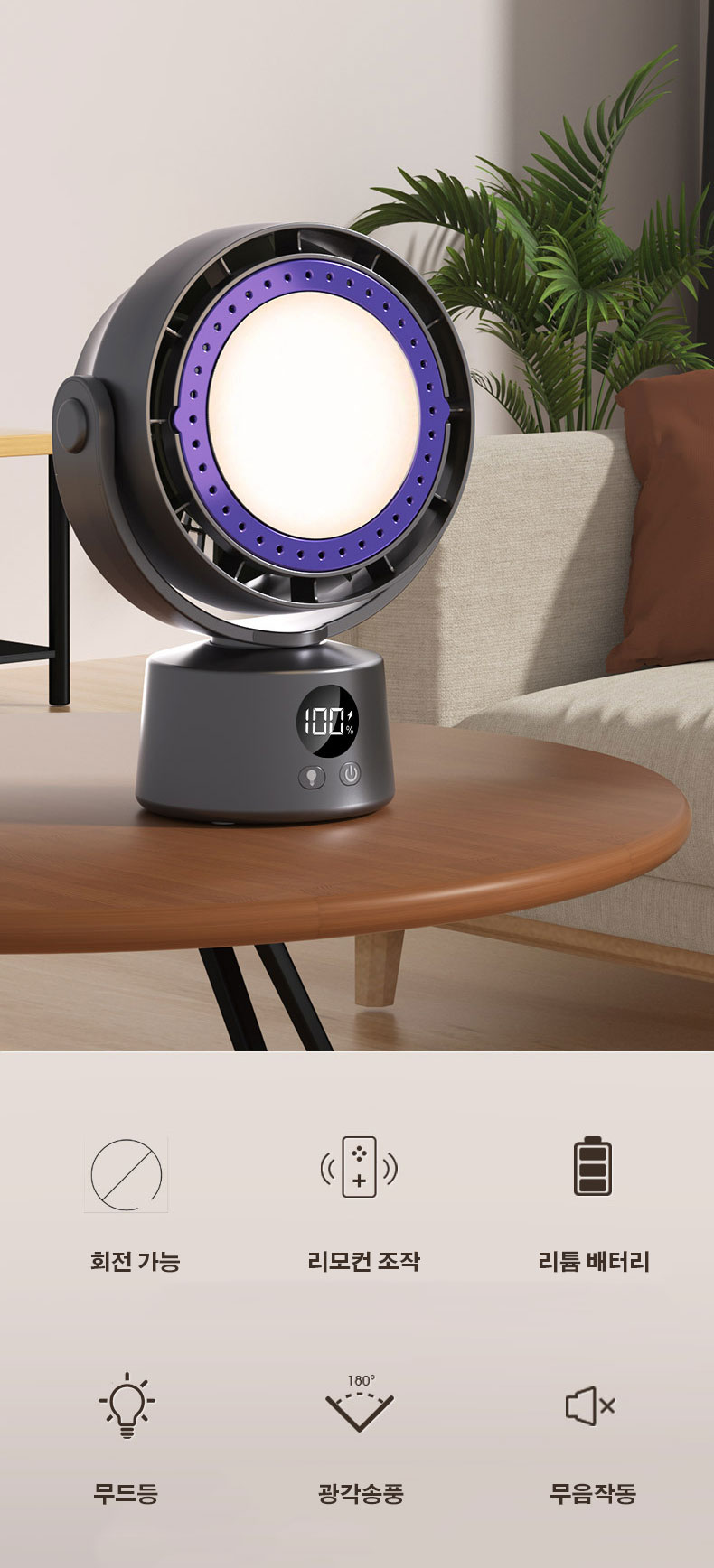 무드등 무선 서큘레이터 탁상용 미니 선풍기 |